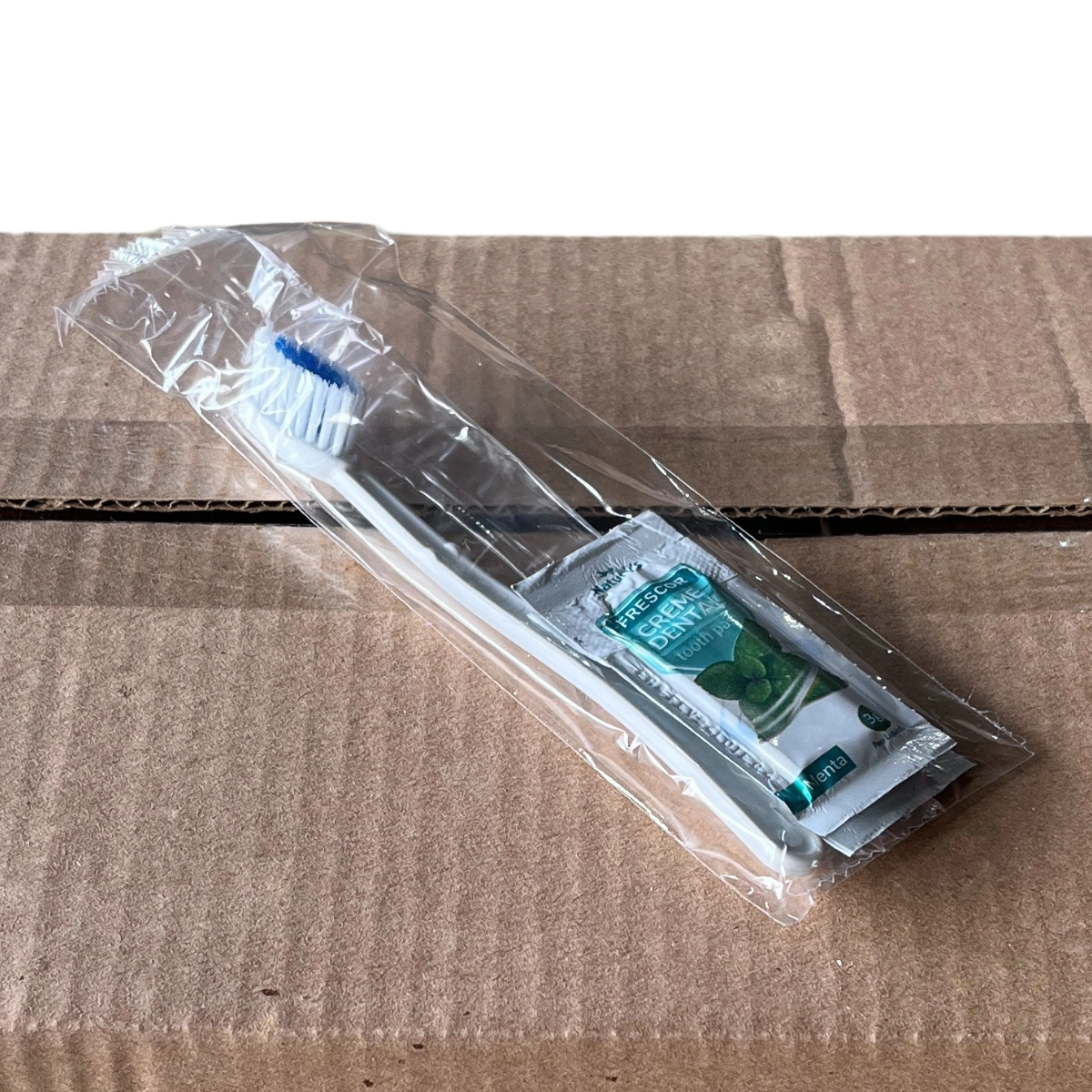 100 Kits dentais 2x1 single (01 escova dental 02 sachês de creme dentais 3g)