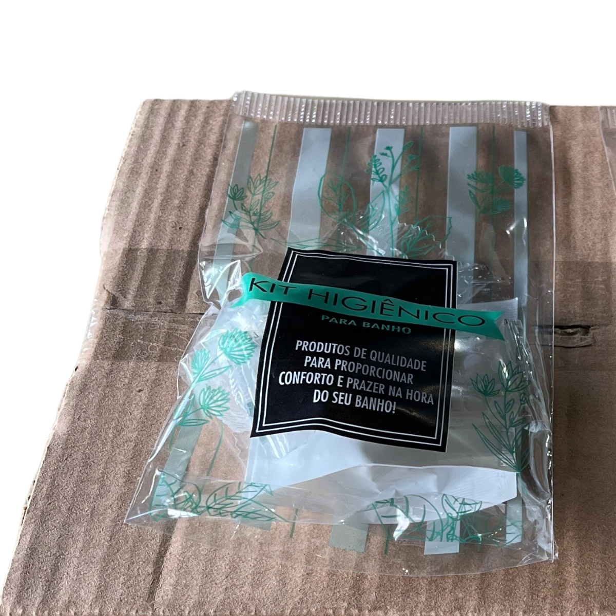 80 Kits higiênicos para banho no saquinho polipropileno (1 sabonete 13g erva-doce, 1 shampoo 2 em 1 30ml. 1 touca de banho)